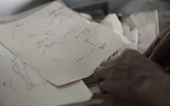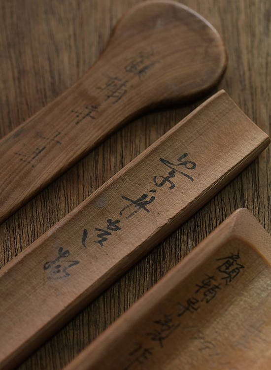 “ “工欲善其事,必先利其器”,这是顾老时常在我耳边提到的一句话。顾景舟在改革创新制壶工具上,就已超出前人。他说 :“要学壶,先学做工具,工具做不好,就不能做壶。”由此,我们不难看出顾景舟在六十多年的制壶实践中对工具的重视。这是因为紫砂壶的成型独特,他不用辘瘘拉坯,或用成型的模具,而是坚持用泥片镶接和打身简的传统方法成型。百壶百样,不可能用万能工具,不同的壶型,用不同的工具。所以顾景舟的制壶工具,就有好几大箱,有几千件之多。由于顾老年纪大,紫砂工艺制作中大多数工具必须自己动手制作,所以一些粗大力气活都由我完成,然后顾老做精细加工,凡制作一件 , 他会从头到尾把原理解释一遍,要求注意事项,比如对做“蓖子”提出要“让”,顾老说 :“生活中要学会让一让,让步、让位,不要争、不要抢,凡事做到让,自己做事就顺当。蓖子也同理,在一条弧线两边要让,做壶时就顺当,不会磕磕碰碰。”