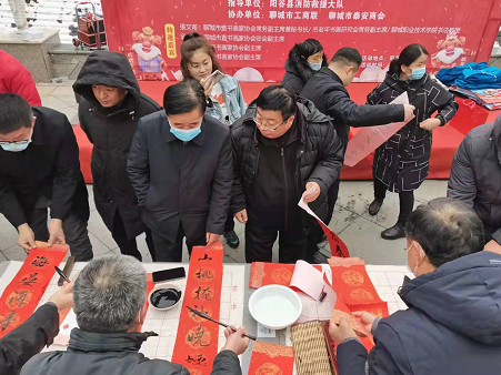 法制焦点时报:(张文甫 陈秀荣)无联不成春、有联春更浓,值虎年新春到来之际,应山东恒超消防技术有限公司诚邀联合大众报社聊城分社新闻中心,山东聊城市直书画家协会书法家一行4人,于2022年1月23日赴阳谷消防救援大队和文明物业管理中心写春联送福字。