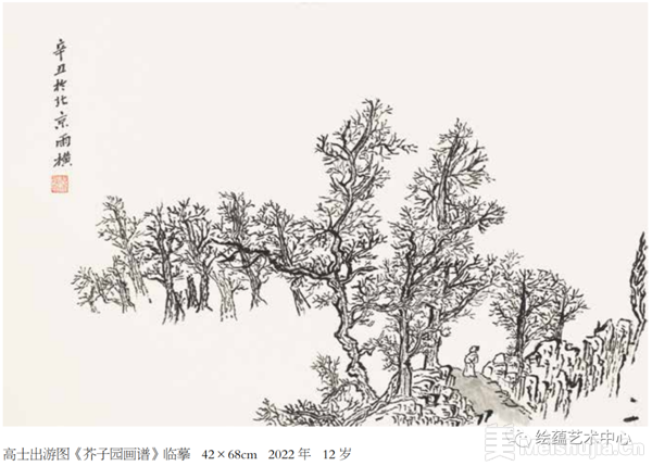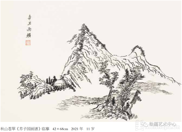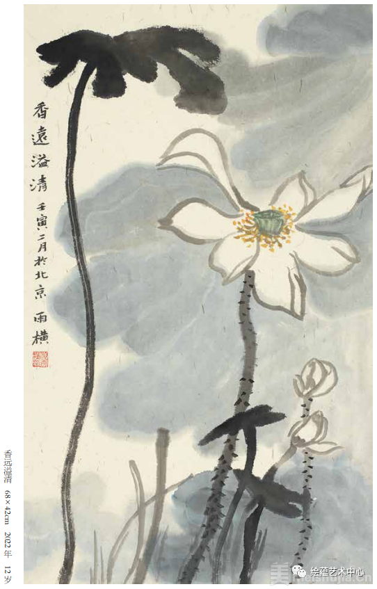 池雨横2010年出生于香港,在校期间得到了王益明、陈旭两位老师的指导教育,近两年又经常去国家画院和中国艺术研究院及中央美院附中,耳提面命于龙瑞、袁学君、杜浩、戴幼楠及孙伟、畅世博诸位先生,使他的作品又有了一个质的飞跃。他钟爱书法与国画,特别是篆行两种书体和《芥子园画谱》,进行了全面系统的临摹,练就了一手过硬的功夫,对骨法用笔,应物象形,经营位置,随类赋彩等等都有了很好的理解。贝蒂.爱德华曾说:“成年学生在绘画的初级阶段并没有真正看到他们眼前的东西,也就是说,他们没有按照绘画所必需的特殊方法感知事物,这个阶段的学生,大多用动漫手法不厌其烦的刻画形象细部,毫无艺术性可言。”而池雨横的学习及感悟力极强,他能够从身边的社会、自然中寻找素材,从前辈的笔墨技巧里寻找灵感,在一步步进入艺术殿堂的同时,体验着临摹学习所带来的愉快情感。
