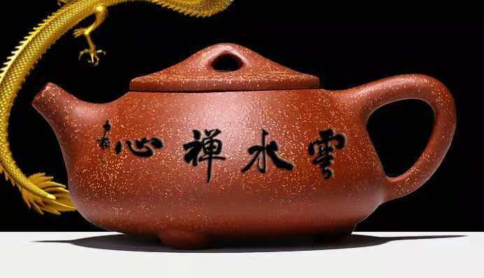 黄中先生在宜兴紫砂壶上题写:云水禅心。禅僧云水行脚时,为了便利生活随身携带紫砂壶。
