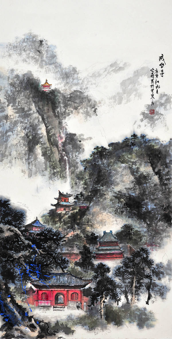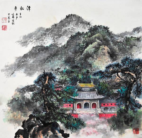 端砚与佛教结缘,早在宋代就已经开始,此后便一直绵绵不绝。其图案主要为两种类型:一种是雕刻佛教人物形象,如佛祖、菩萨、罗汉等;另一种就是雕刻佛教寺庙建筑。这套“百刹砚”属于后一种类型。虽然古已有之,但是纵观古今我国各个砚种,还不曾有哪一个砚种将全国各地著名寺庙纳入自己的创作中。所以,这套“百刹砚”是既有继承又有创新的。这不仅是敢于构想扩大数量的简单问题,其间还需要走访这些散布在我国四面八方的古代名刹,仔细观察体验,绘制这些古代名刹独特风韵的图案。这是一项需要时间,更需要艺术匠心并付出艰辛劳动才能完成的工作。韩光森先生是个有心人,作为山水画家,他早就敏锐地感受到了古代佛寺建筑与山水风景的密切关系,因此在他几十年的绘画生涯中,已经积累了许多佛寺建筑和山水名胜相结合的作品。正是有这样一些作品为前提,所以才会有这个“中华百方古刹传世精品端砚”的创作实施。