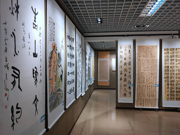 本次展览共展出著名书画家顾亚龙、吴东民、王丹、侯宇爽、王颜山、齐新民、于受万、孙雨田、孟鸿声、赵长刚、米闹、闫锐敏、邵志军、樊利杰、刘晓辉、范杰、徐培栋、赵新法、王新平、梁能伟、亓汉友、曹钰、纪君、孙肖嘉、赵卫东、耿毓亮、邹方臣、马建钧、王立华、常绍彦、田根承、杨长河、王步强、郝晓明、苏显双、赵友章、孙熙敏、张伯祥、邹涛、邹立军、姜长胜、李玉福、黄中、张颖、张紫溪、胡军、孙云层、张志钢、赵远军、李波、李霖、戴军、张其亮、杨忠奎、邹立军、范磊、赵锐、王纪刚、冯建华、韩家平、田淑国、冯尚杰、杜纪龙、郑学东、刘小龙、孙良、谭文清、高小立、常子业、李相松、张公壮、邢喆、王昱雯、姜向艺驰、庞博涵等省内外书画名家作品100幅,韩方作品10余幅,淄博市老领导刘池水、高峰岭也为本次展览题词祝贺。