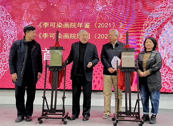 李庚院长、陈高潮社长、西沐副院长、赵春彩董事长为《李可染画院年鉴(2021)》《李可染画院院刊(2022)》首发式揭幕