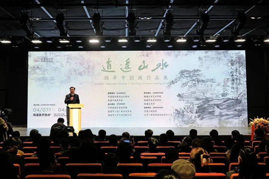 4月7日,由中国国家画院山水画所、民盟中央美术院指导,南通市委宣传部、南通市文化广电和旅游局、南通市文学艺术界联合会主办,南通大学艺术学院、南通市美术家协会、南通美术馆等单位承办的“逍遥山水——顾平中国画作品展”在南通美术馆开幕。南通市政协党组书记、主席黄巍东宣布展览开幕,南通市人民政府副市长、南通市民盟主委刘洪,南通大学党委常委、副校长王卫东出席活动并致辞。南通市委宣传部常务副部长蔡忠主持开幕式。