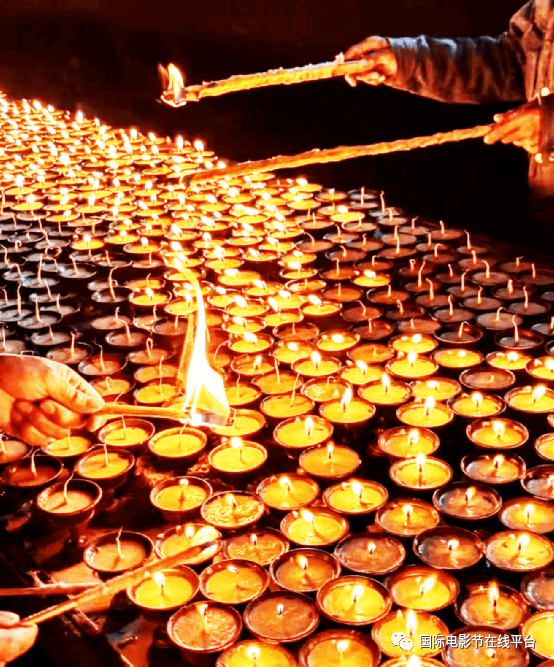 喇嘛点亮万玛才旦告别仪式上的酥油灯