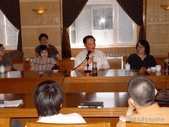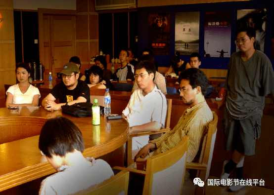 万玛才旦(左一)参加北京电影学院2004届毕业联合作业研讨会