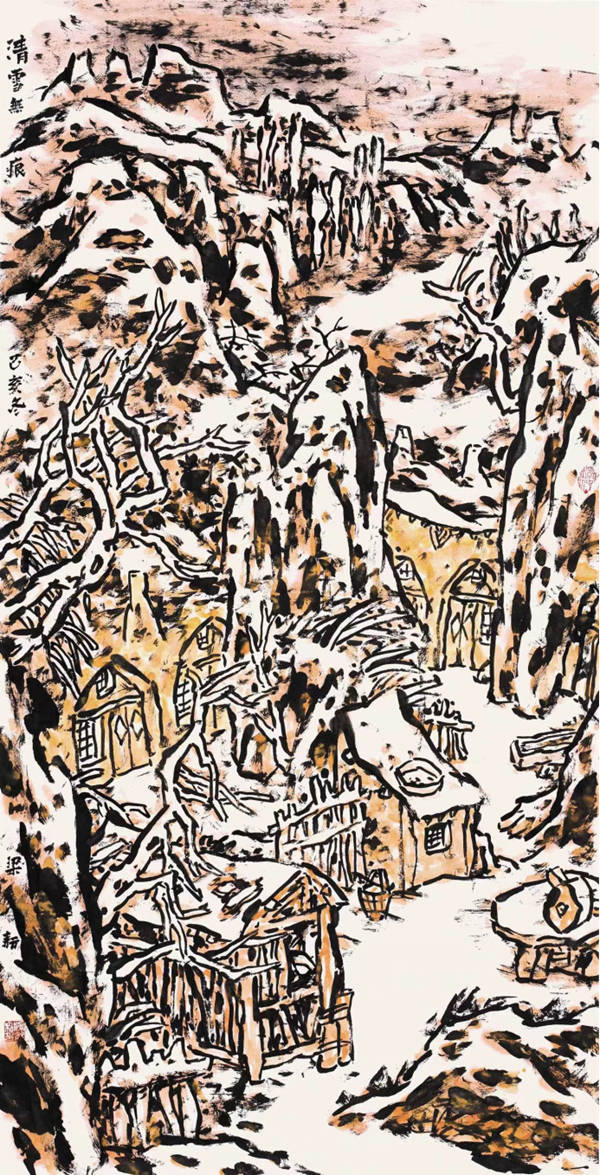 梁耘作品《清雪无痕》 69cm×138cm,纸本水墨,2019年