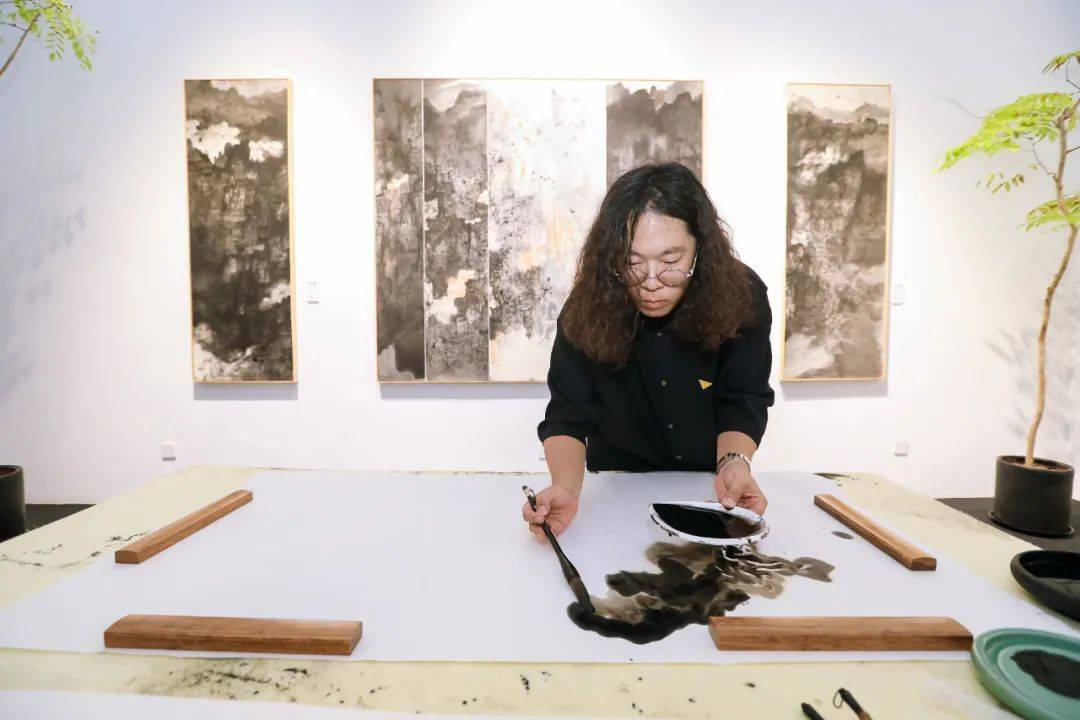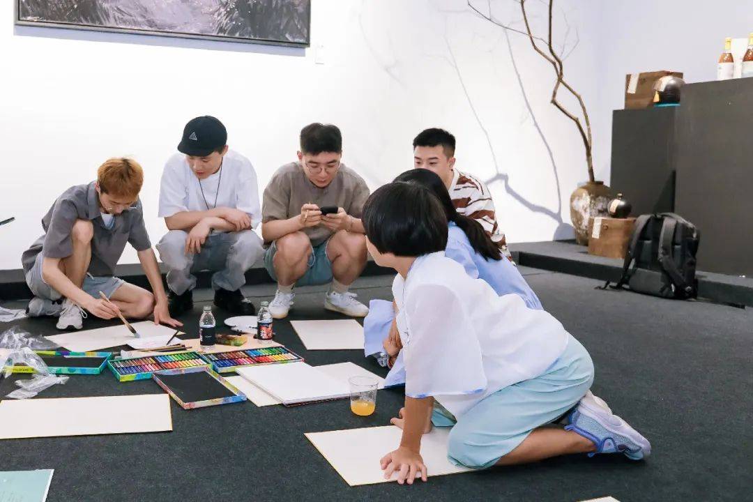 展览开幕仪式结束后,九零创作画社的青年艺术家们开始带领现场嘉宾一同参与了即兴艺术创作活动。在创作中大家热情交流关于艺术的创作感悟和观展感受。