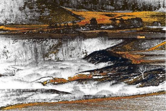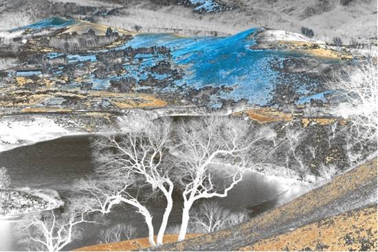 太阳把光反射到地球上时,光已经穿过了数不清空间的物质。光在空间与同一种物质碰撞时,因物质所处的空间位置不同会产生不同的光效,在与不同的物质碰撞时也会产生不同的光效。也正是如此,我才能够从任何一张照片中分离出不同的光色,并且还能够从这张照片中裂变出数不清的色彩所形成的结构图案。这就意味着,人们可以从空间的信息中分离出不同的色彩,可以从光图中裂变出不同色彩所构成的图案。从空间取出光效形成的图案是取之不尽用之不竭的,只要有光,就可从不同的物质上分离和裂变出不同的光效图案。