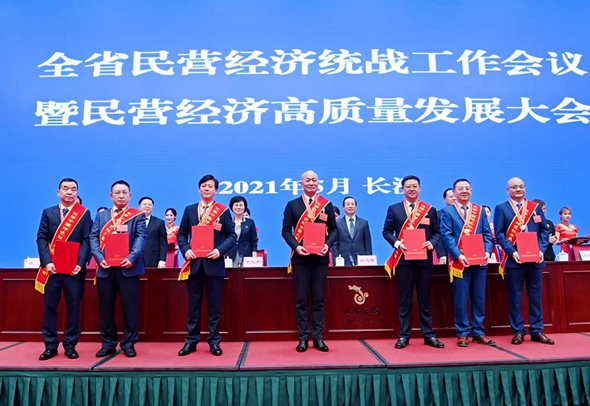 5月28日下午,湖南省民营经济统战工作会议暨民营经济高质量发展大会在长沙召开。会议深入学习贯彻习近平总书记关于民营经济的重要讲话指示精神,全面落实关于加强新时代民营经济统战工作的意见和全国民营经济统战工作会议精神,表彰第四届湖南省“优秀建设者”,交流民营经济统战工作经验,为促进民营经济高质量发展、建设现代化新湖南凝心聚力。