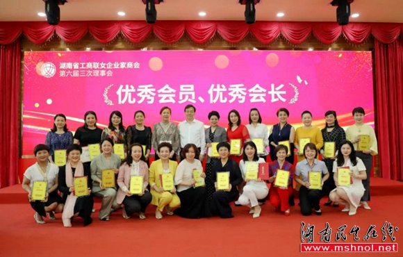 湖南省政协副主席,省工商联主席张健代表省工商联、省总商会,对会议召开表示热烈的祝贺,并通过与会代表向全省广大女企业家表示诚挚的问候。他希望,全省女企业家商协会组织能继续发扬优良传统,努力争取成为其他商协会的示范和榜样;彰显特色优势,致力于打造全省范围内的特色商协会;适应时代发展需要,理顺管理体制,更好地发挥女企业的整体作用。希望各位女企业家能不负时代,在建设现代化新湖南中建功立业,为实现中华民族伟大复兴的时代伟业做出新的更大的贡献!随后,湖南省工商联会员处处长龙立豪宣读表彰决议,对在新冠肺炎疫情期间表现突出的先进集体、先进个人、先进基层党组织、优秀党员、优秀会长、优秀会员、优秀团体会员进行了表彰。绿之韵集团荣获“湖南省工商联女企业家商会抗疫先进集体”,绿之韵集团董事总裁劳嘉荣获“湖南省工商联女企业家商会优秀会长”。