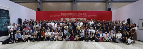序属三秋,天清气朗。9月13日,中国国家画院迎来了2021-2022学年开学典礼暨“见贤思齐·教学观摩展”开幕式。正值党的百年华诞,又欣逢中国国家画院成立40周年,今年的开学典礼格外庄重。到会嘉宾和中国国家画院的各位导师,与来自全国各地的访问学者、高研班学员以及文化和旅游部全国画院中青年创作骨干研修班学员一起,第一次坐在新落成的明德楼展览大厅里,举行开学典礼与教学观摩展览开幕式,既从一个侧面展现了中国国家画院前辈大师巨匠们搭建的国家级艺术创作与研究平台40年来所取得的成就,也让人由衷期待中国国家画院的未来盛景。