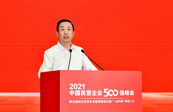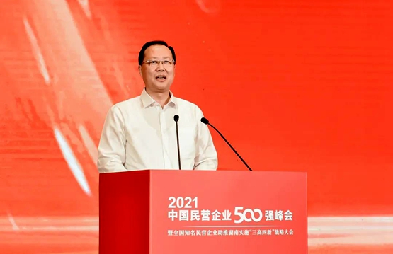 全国政协副主席、全国工商联主席高云龙在致辞中指出,在庆祝中国共产党成立100周年大会上,习近平总书记擘画了全面建成社会主义现代化强国的第二个百年奋斗目标,让广大民营经济人士无比振奋、信心倍增,激发出了民营企业开拓进取、再创辉煌的强大力量。当前,我国发展已经进入新阶段,500强企业作为民营经济蓬勃发展的亲历者,要立足两个大局,完整、准确、全面贯彻新发展理念,用知重负重、攻坚克难的实际行动,在实现中华民族伟大复兴的新征程中建功立业。