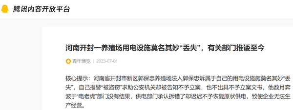河南开封一养殖场用电设施莫名其妙“丢失”,有关部门推诿至今
