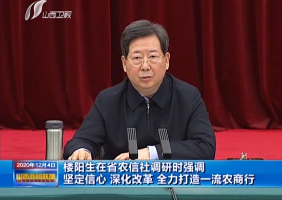 随后,楼阳生主持召开座谈会,听取省农信社半年来工作汇报,与有关部门一起研究推进农信社改革发展工作。他对省农信社化险改革取得的成绩给予充分肯定,指出,这半年是山西农信社发展史上极不寻常的半年。实践充分证明,改组后的省联社班子是政治可靠、坚强有力、敢于担当、能打胜仗、卓有成效的,全省农信社系统广大干部职工是爱岗敬业、凝心聚力的,全省农信社工作呈现崭新面貌。楼阳生对下步全省农信社工作提出五点要求。一是增强信心,目标一流。 在省委的坚强领导下,坚定信心,直面问题,敢于担当,强信念、强技能、强服务、转作风,持续推进金融改革发展,彻底解决历史遗留问题,在凤凰涅槃、浴火重生的基础上,坚定不移实现打造一流农商行的目标。二是深化改革,防化风险。 牢牢把握改革正确方向,坚持从“根上改、制上破、治上立”,稳扎稳打,步步为营,坚持底线思维,强化风险防控,精准施策,攻城拔寨,积小胜为大胜,打造运行健康、服务高效的农商行。三是健全治理,标本兼治。 坚持法治思维、改革精神、创新办法、市场机制,健全法人治理结构,创新创优农信社管理体制机制,为标本兼治创造条件、夯实基础。四是服务三农,振兴乡村。 坚持农信社姓农,始终把服务“三农”作为农信社的天职。巩固拓展脱贫攻坚成果,实现与乡村振兴有效衔接,农信社肩负重任、使命光荣。要积极投身乡村振兴,充分发挥好“三农”金融服务主力军作用。五是加强领导,政治保障。 坚持党建引领,把全面从严治党贯穿于深化金融改革改制全过程,落实到监管工作和内部管理各方面,建强基层党组织,为各项工作开新局、谱新篇提供坚强组织保证。