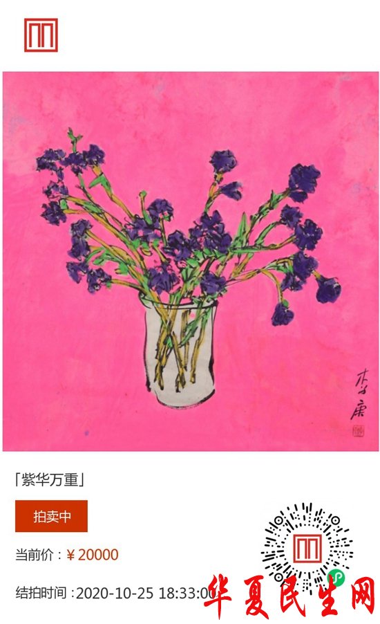 10月22日下午,李可染画院院长李庚新作静物花卉拍卖在融艺之堂艺术家平台正式开拍,以限时直播方式进行拍卖,至10月25日结拍。一朵朵色彩浪漫、激情烈烈的芳华绽放,一片片嫣红姹紫、明黄幽蓝的彩卉流奔,大块颜色,花事幽微,每一幅都似在触碰出一花世界的芥子须弥之相。李庚先生明艳深厚的创作甫一面世,讯速引起美术界业内人士关注。