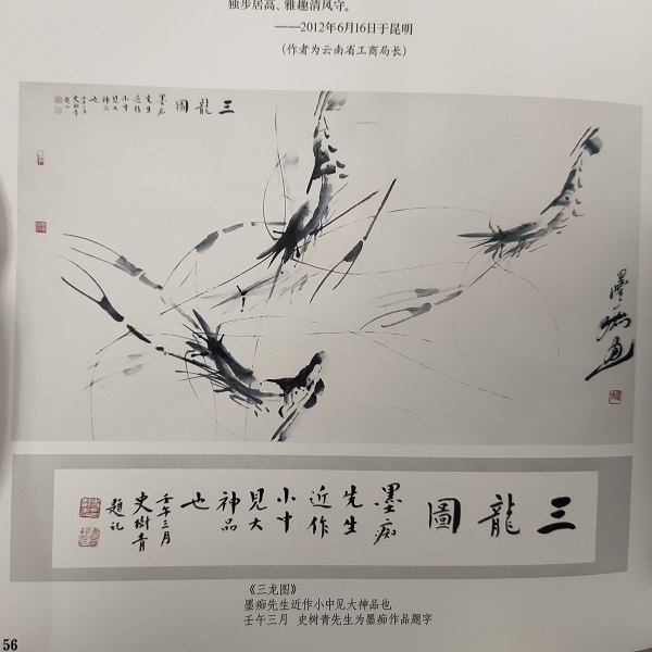 鉴赏大师史树青也亲自为他作品《三龙图》题写