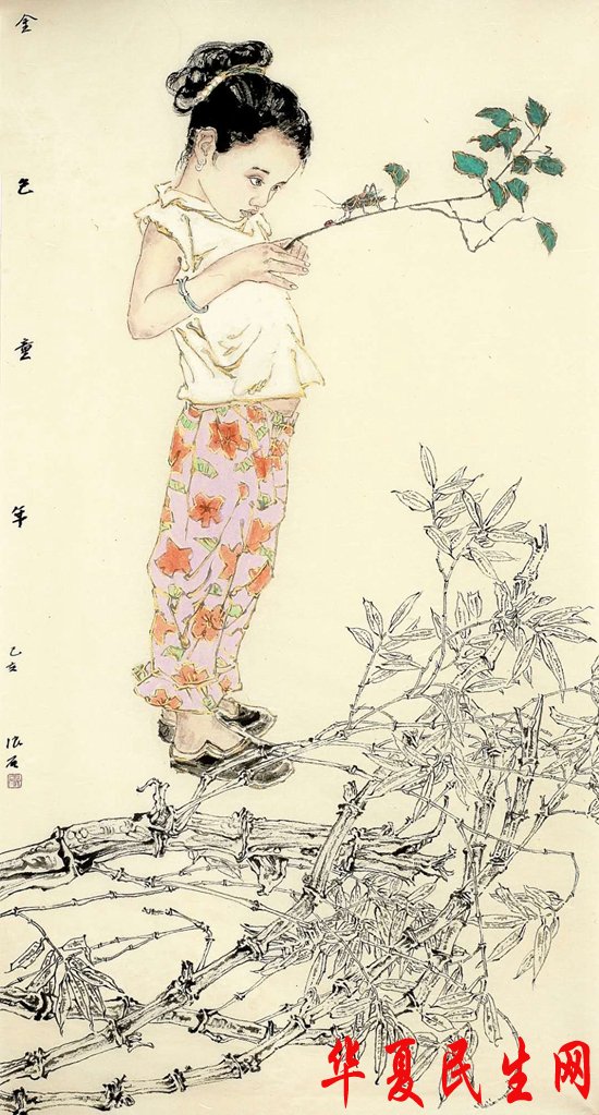 他的现代都市体裁作品是以现实生活为依据,那些在特定的生活环境中自然而然的人物形象所展现的生活状态,情趣意味常常使他激动不已。这些少女身上充溢着一种纯情秀洁的高雅和美丽。《人淡如菊》《桃花依旧》《且听风吟》《杨柳依依》等一批作品,好像是生活中一个真实镜头。那些充满憧憬的少女的神态意趣都是她们或伫立于康桥,或散步于田间,或回眸于雨巷,或闲坐于茶社,或采撷于林中等各自日常生活状态自然而然的显现的,环境的确定性,具体性更使人物的情趣动态显现出一种原汗原味的纯朴的美感更接近生活本来的样子。
