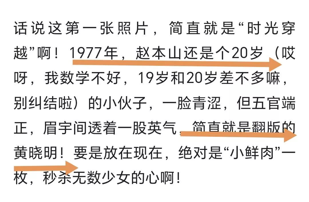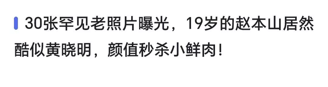 插播一句题外话,最近,赵本山一组当年的照片曝光,有网友称其撞脸黄晓明,看下面这个报道,可以看出来该网友对晓明哥的评价很高了