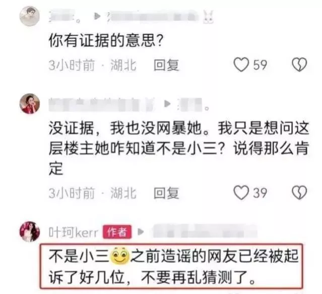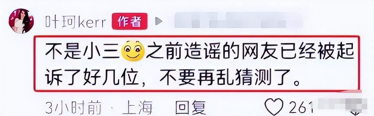没有任何名分的叶珂,终于在2024年4月份,在评论区怒怼网友称自己“不是小三”,还警告黑粉不要再造谣,否则将面临被起诉的结果。