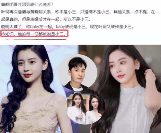 首当其冲就是baby了,当时baby跟陈伟霆还没有分干净,黄晓明直接被港媒点名说,翘了墙角还不认人。