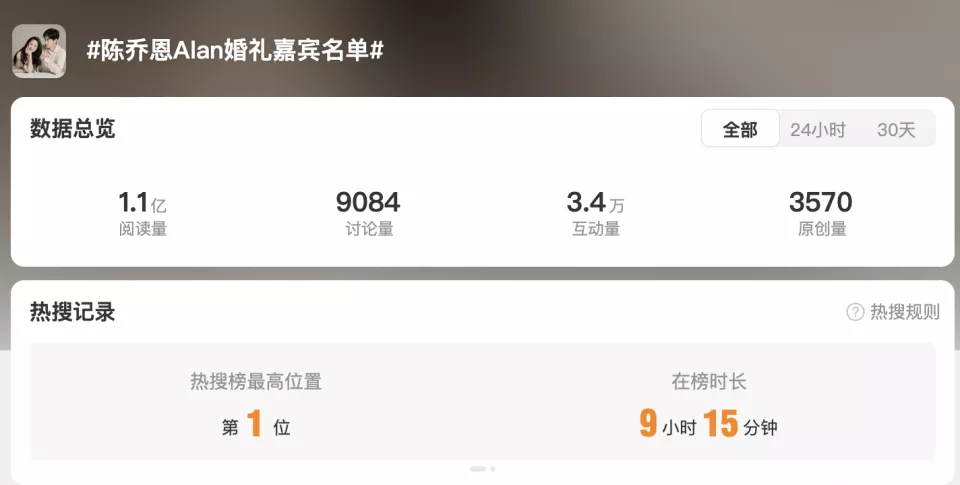 日前“陈乔恩Alan婚礼嘉宾名单”登上热搜榜第一的位置,显然他们要步入婚姻殿堂了。据悉,陈乔恩和Alan将在本月22日在马来西亚的卡威举办婚礼。