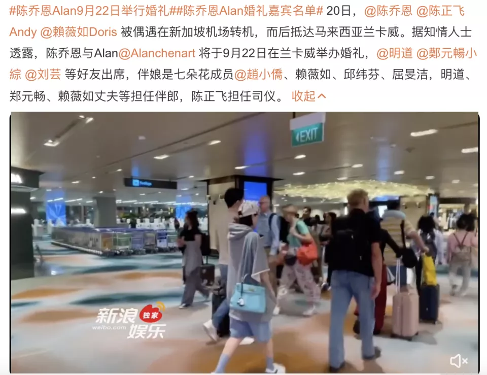 日前陈乔恩等人现身新加坡机场专机,之后抵达马来西亚兰卡威。曝光的婚礼嘉宾名单上的人物也大都是娱乐圈的知名艺人,谢娜、郑元畅、明道等家喻户晓的艺人都在其列。