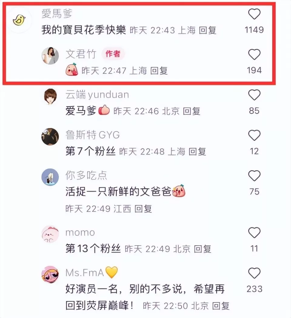 文章在评论区亲自为女儿送祝福,祝福语刚好与蛋糕上的十分类似,他写道:我的宝贝花季快乐。
