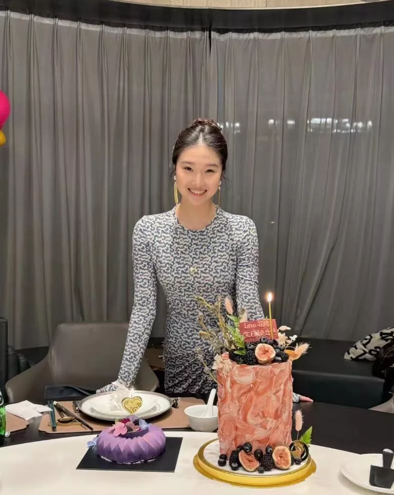 不少网友都夸赞她漂亮,能够看到她的面前摆放了两个精致的生日蛋糕,其中一个大的蛋糕上面写着:Ima花季生日快乐。