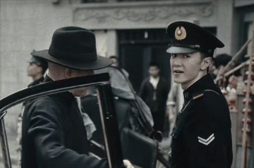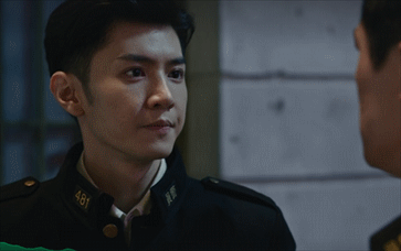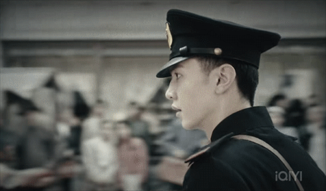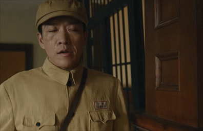 前一秒扮演老者时城府深沉,整个人的气场都十分压抑,而穿上军服后立刻容光焕发,目光如炬,让人倍感亲切,着实感受到解放军带来的安全感。
