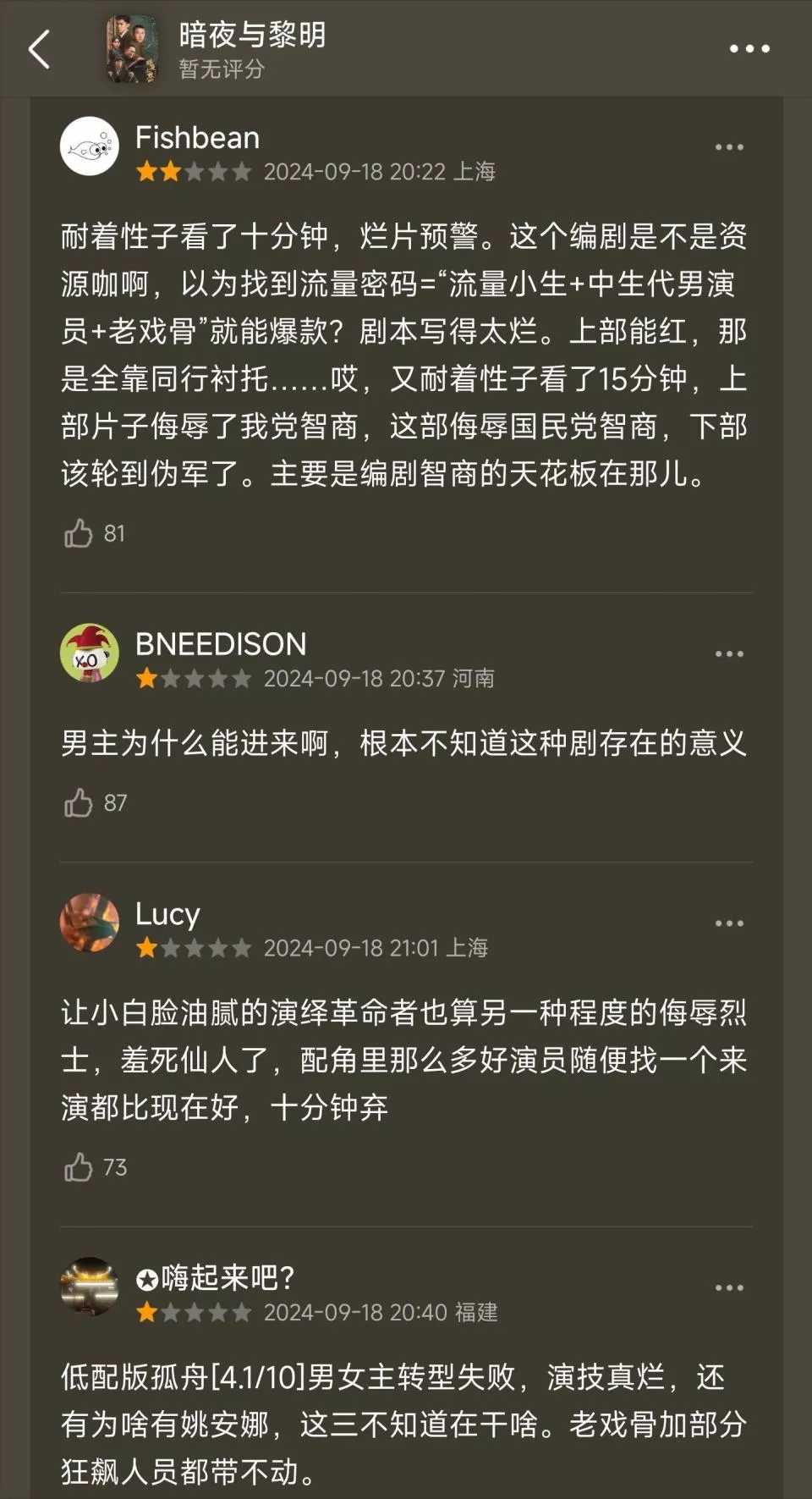 《暗夜与黎明》被差评淹没:小鲜肉毁了一群老戏骨
