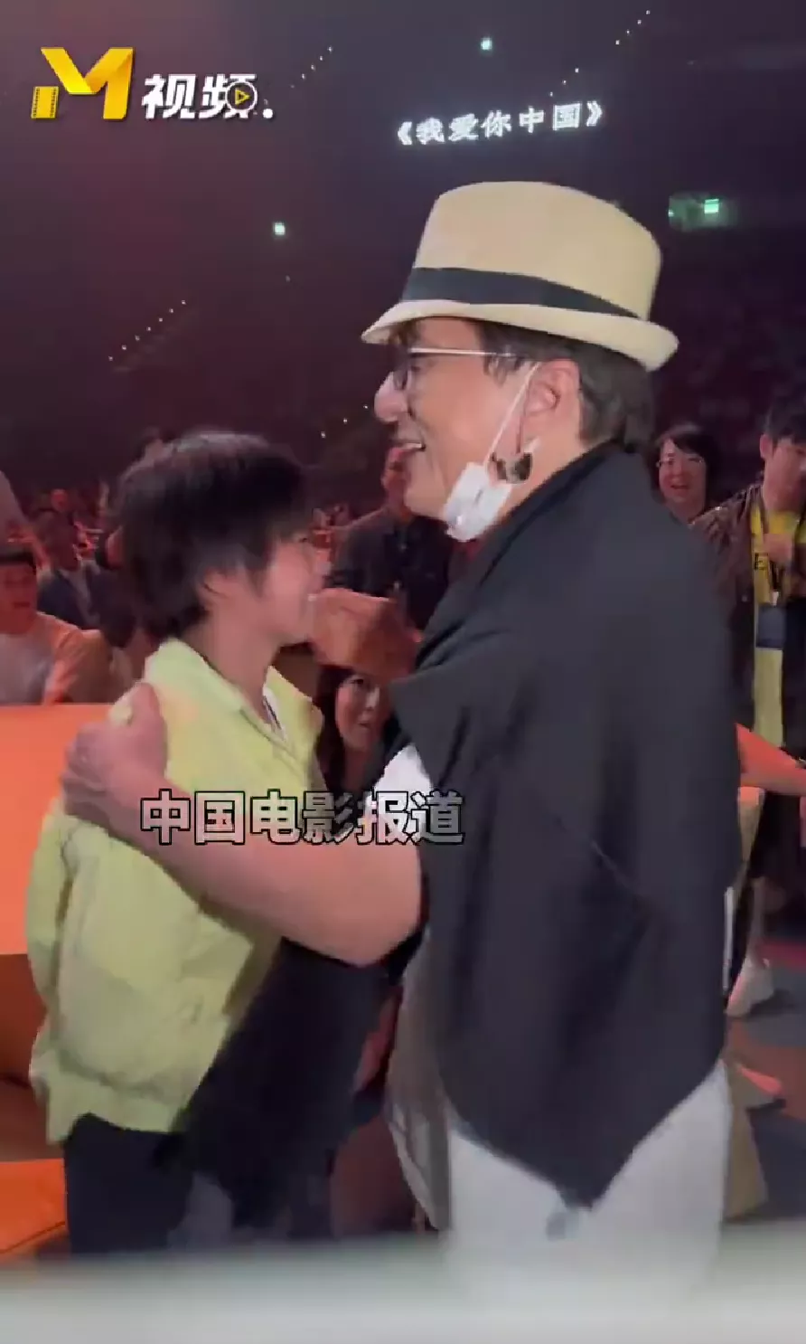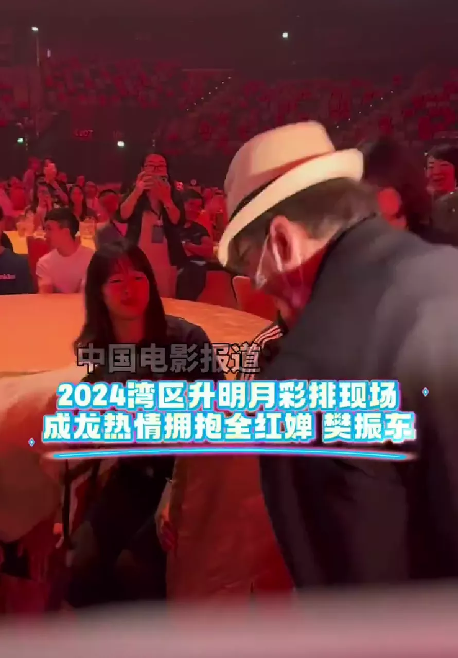 小红也十分自来熟地依偎在成龙的怀中,成龙笑着称赞道:“太厉害了!”