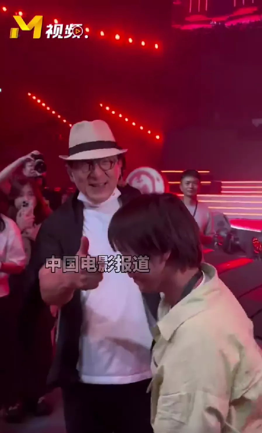 9月22日消息,9月22日,在2024大湾区电影音乐晚会彩排现场,香港功夫巨星成龙见到了巴黎奥运会冠军全红婵和樊振东,立刻进入夸夸模式,大赞两位奥运冠军是“中国人的骄傲”,还热情握手加上“顶礼膜拜”。