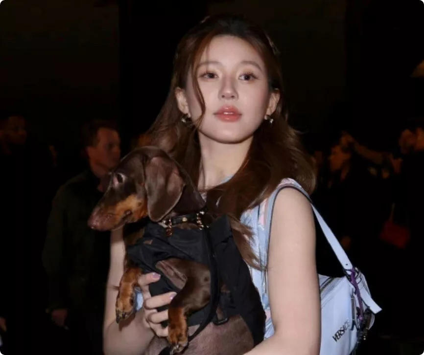 95花赵露思,以清纯少女的形象亮相时装周,她一身淡蓝色的礼裙,搭配款式新奇的高跟鞋,从头到脚都透着时髦女郎的气质,当然她这一身最吸睛的搭配单品,就是她的腊肠小狗。