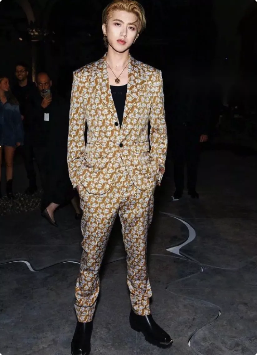 和赵露思同框出现的蔡徐坤一样很久没有出现在公共活动上,他的这身印花西装和赵露思的礼裙元素相同,两人坐在一起的时候也有种俊男靓女的吸引力,不过外媒的镜头都比较刁钻,蔡徐坤身形修长高挑,但是在外媒微微俯视的角度下,却被拍成了一米六的即视感。
