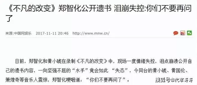 在2017年的时候,郑智化受邀参加了一场综艺节目,也就是在这场综艺节目中,解开了一个郑智化尘封了多年的秘密。