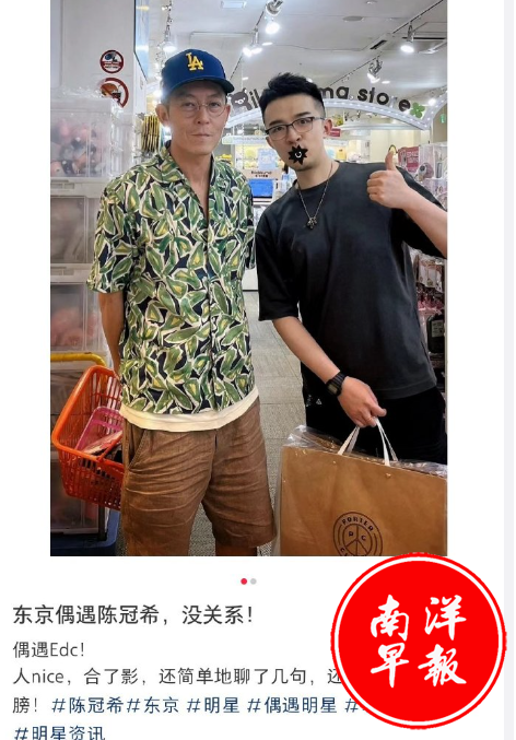 而当年与余文乐同期的陈冠希,老的也不遑多让,他在日本被粉丝偶遇,整体已经无限趋近赵本山了。