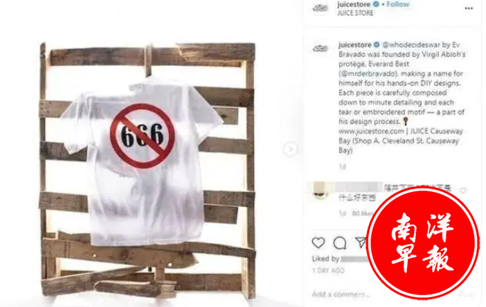 不仅如此,他还干脆出了一件T,图标是禁止666,余文乐的绰号就是六叔,摆明了翻脸。