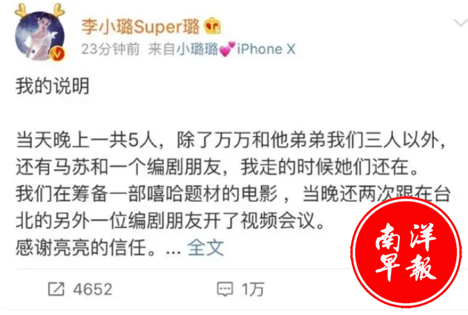 甜馨妈妈发了声明,表示在场的还有其他几个朋友,其中一个就是马苏,表示自己很清白。