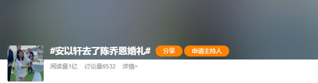 陈乔恩结婚在热搜上挂了两天,只是新郎是素人,基本没有什么讨论度,倒是女嘉宾安以轩成了热门话题。