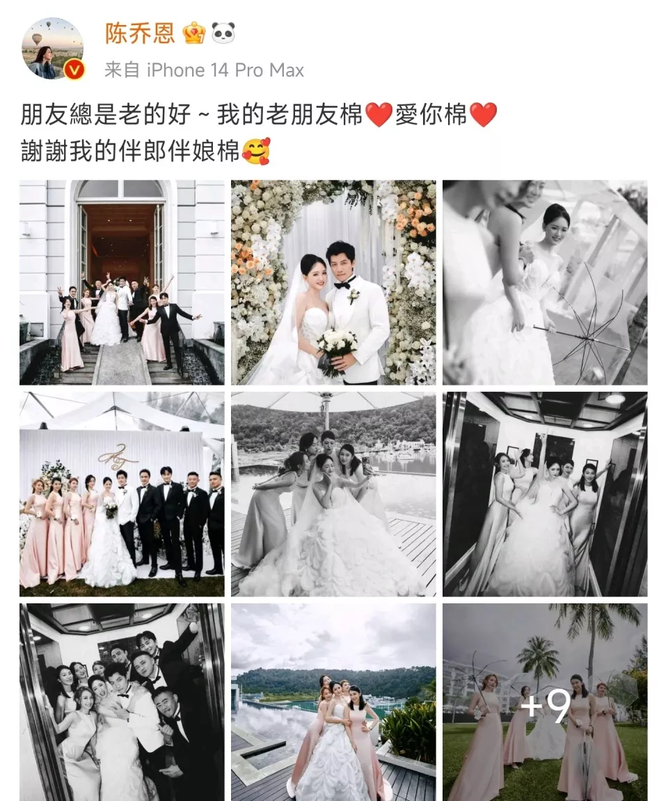 因为是小型婚礼,所以只邀请了双方的至亲好友,所以并没有出现明星大腕出席的大场面,伴娘团都是陈乔恩的闺蜜好友,“七朵花”组合成员,伴郎团以明道和郑元畅领衔,除了明道和郑元畅两位网友熟悉的面孔,圈内的明星并不多。