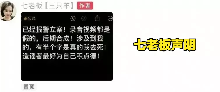 三只羊另一名主播七老板也晒出了立案回执单,并提到曝出的录音视频都是后期合成的,若自己涉及其中就去死。