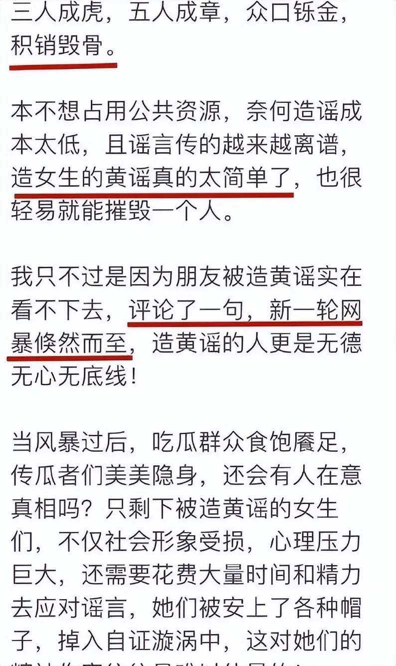 滔滔不绝斥责造谣者,却一直都在试图把所有女生都拉下这趟浑水,用意何在?网友都看不下去了,给她留言“该回应的不回应”,“天天给自己营销有文化白富美人设”。