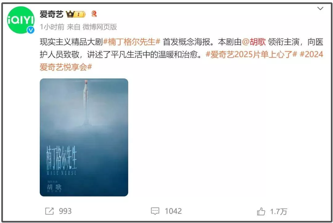 胡歌在二封白玉兰视帝之后,终于官宣了新剧信息,结果剧名直接引发巨大争议,名为《楠丁格尔先生》。