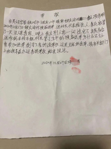 调兵山市晓南镇部分村民被剥夺选票权,联名举报