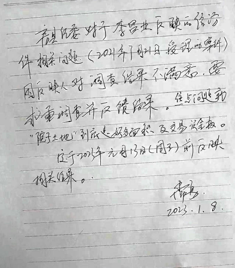 2023年1月8日李昌业向房县纪委申请到北 京中 纪 委 举 报,房县纪 委信 访室主任书面承诺房县纪 委将重新立案调查。