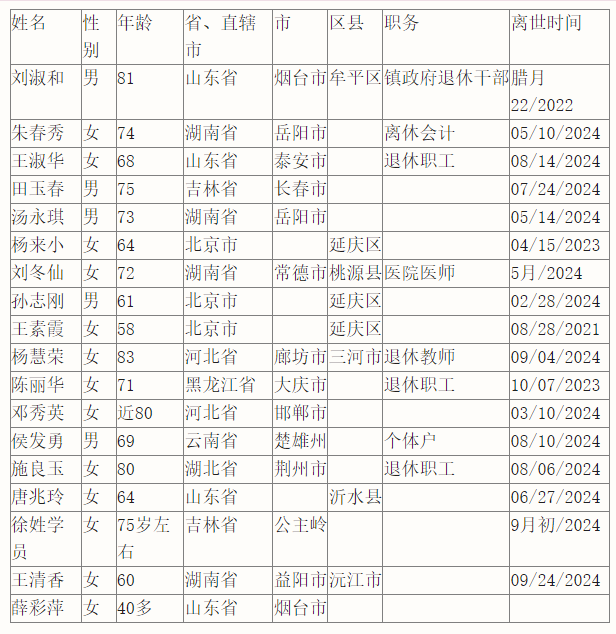 二、18人遭迫害离世或含冤离世案例