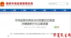 国家市场监督管理总局网站截图。 中国网12月24日讯 据国家市场监督管理总局网站今日消息,近日,市场监管总局根据举报,依法对阿里巴巴集团控股有限公司实施“二选一”等涉嫌垄...