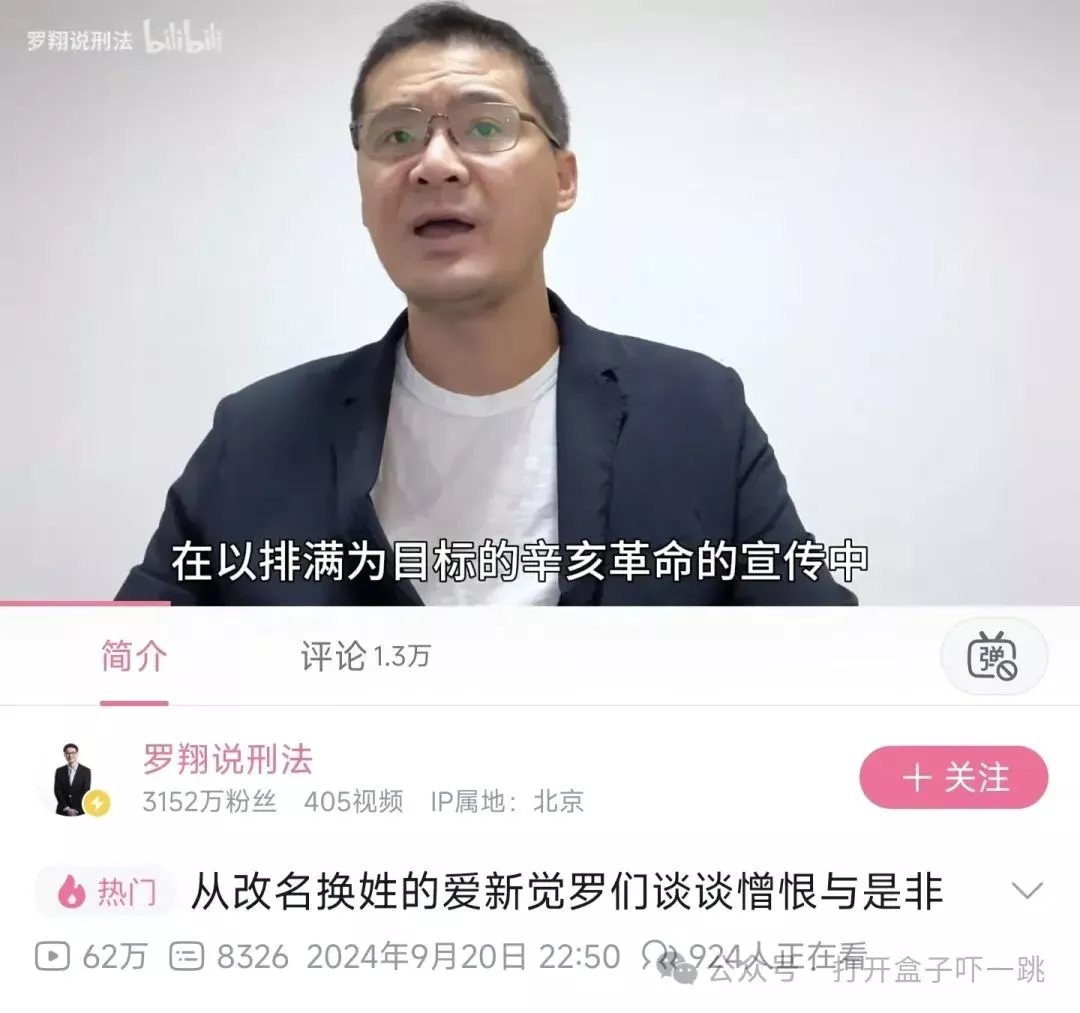 9月20日,罗老师在B站做了个标题为 “从改名换姓的爱新觉罗们谈谈憎恨与是非” 的视频。